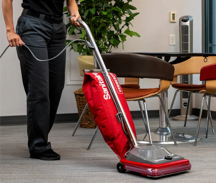 Durable, lightweight TRADITION® Commercial Upright Vacuum lowers cost of ownership with a 2,000-hour motor, shake out bag and chrome brush roll with replaceable bristle strips. Increase productivity with less downtime with a large-capacity, 18-qt. shake out bag and 50-foot cord. (UL Listed) SC684