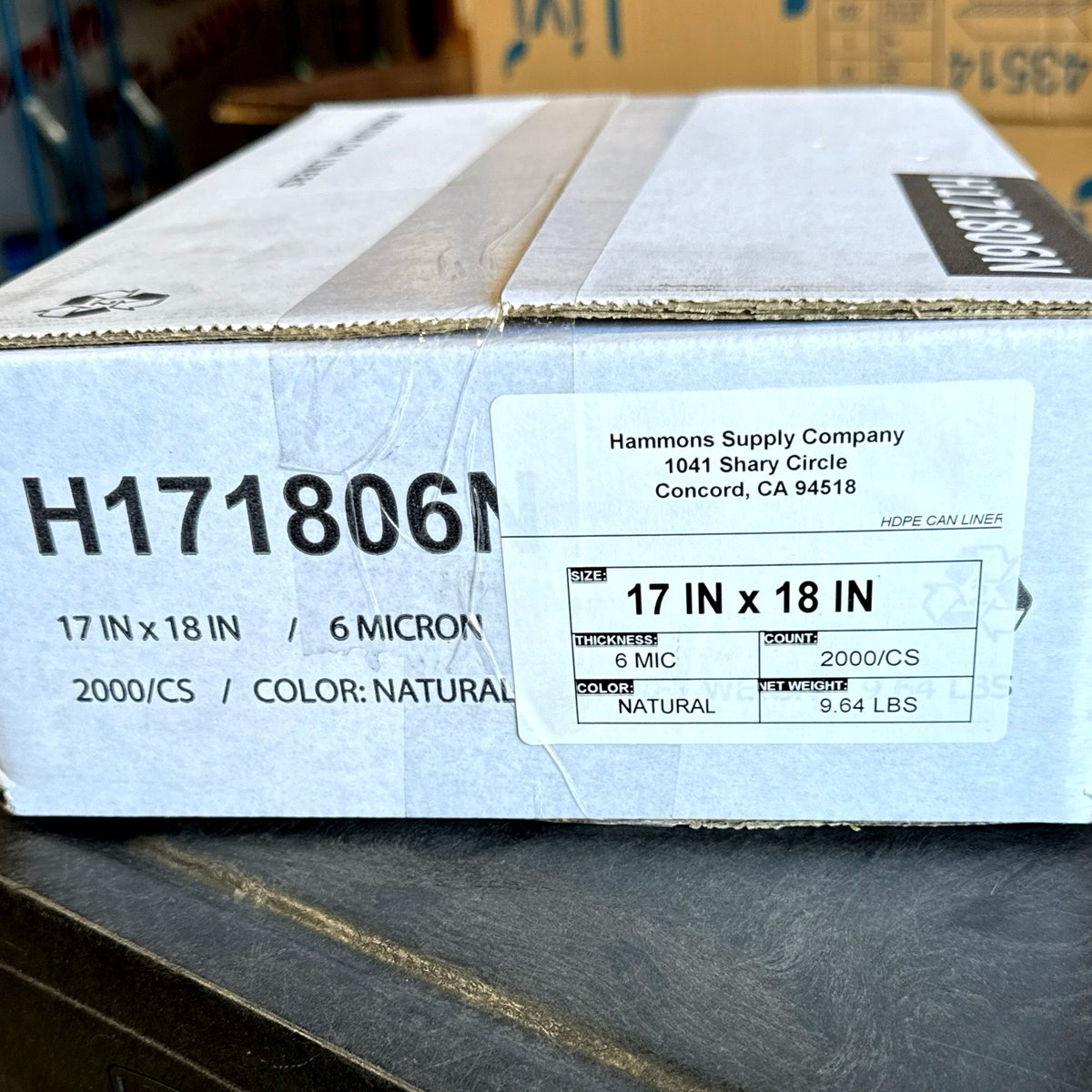 17X18 6 MICRON CLEAR LINERS 2000/CS