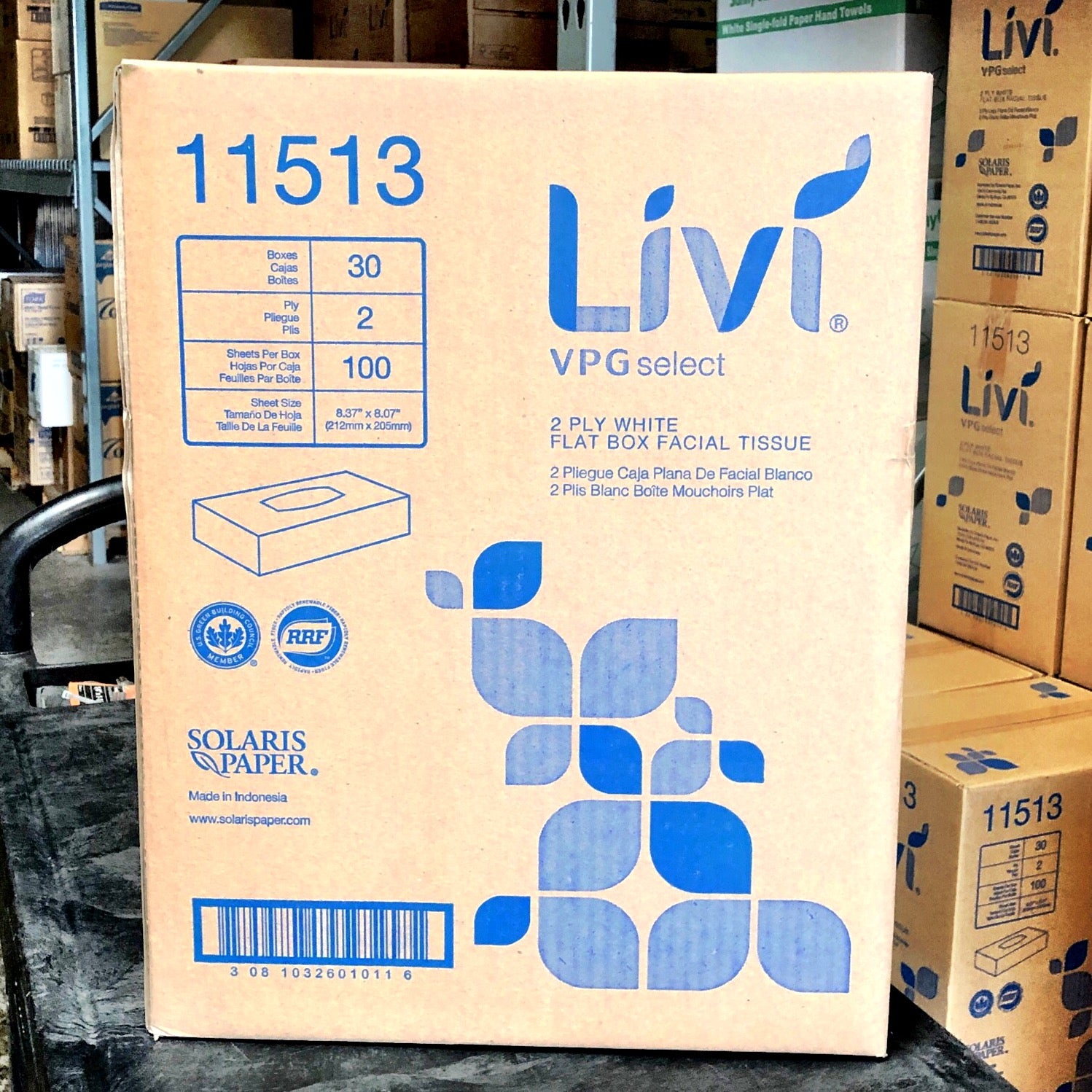 The Livi® VPG Select family of products consistently delivers high quality performance that exceeds customer’s expectations. Livi VPG Select facial tissue is a premium quality facial tissue made from Virgin Plantation Grown, Rapidly Renewable Fiber (RRF), which produces a white, bright and soft product.