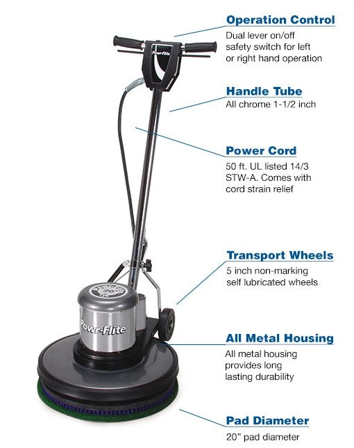 175 RPM floor machines use a heavy-duty all-steel triple planetary transmission to stand up to your most demanding work. All metal handle housings, tube and trigger assemblies add to the long-lasting durability of the machine.