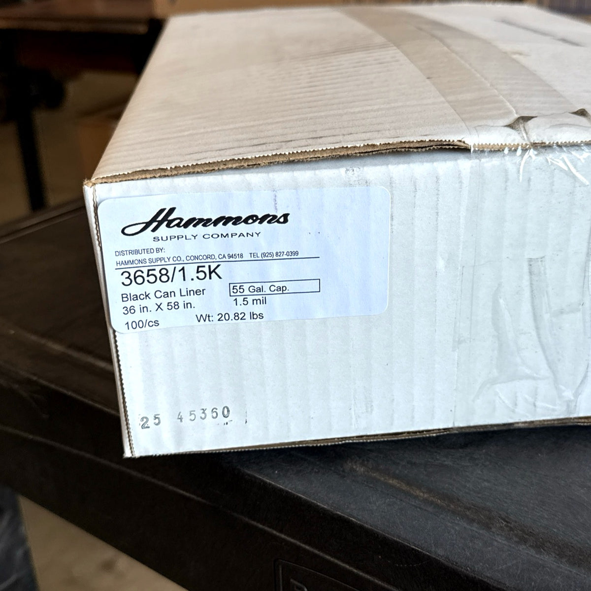 36X58 BLACK 1.5 MIL LINERS 100/CS (55 GALLON)