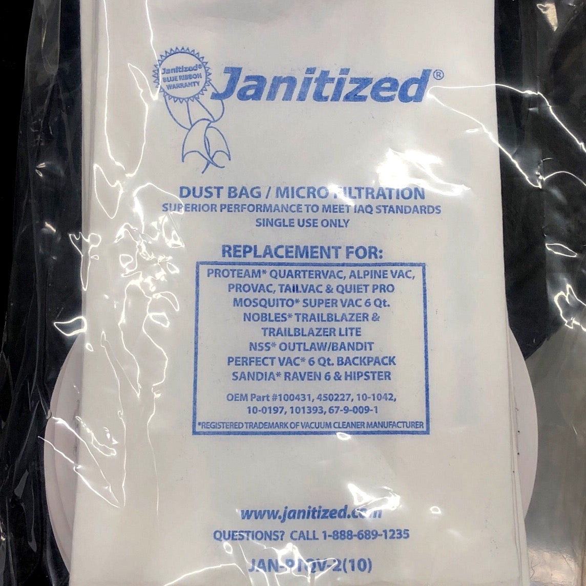 6qt PAPER FILTER BAG FOR ROUND MOSQUITO & PROTEAM VACS (QVB) 10/PKG