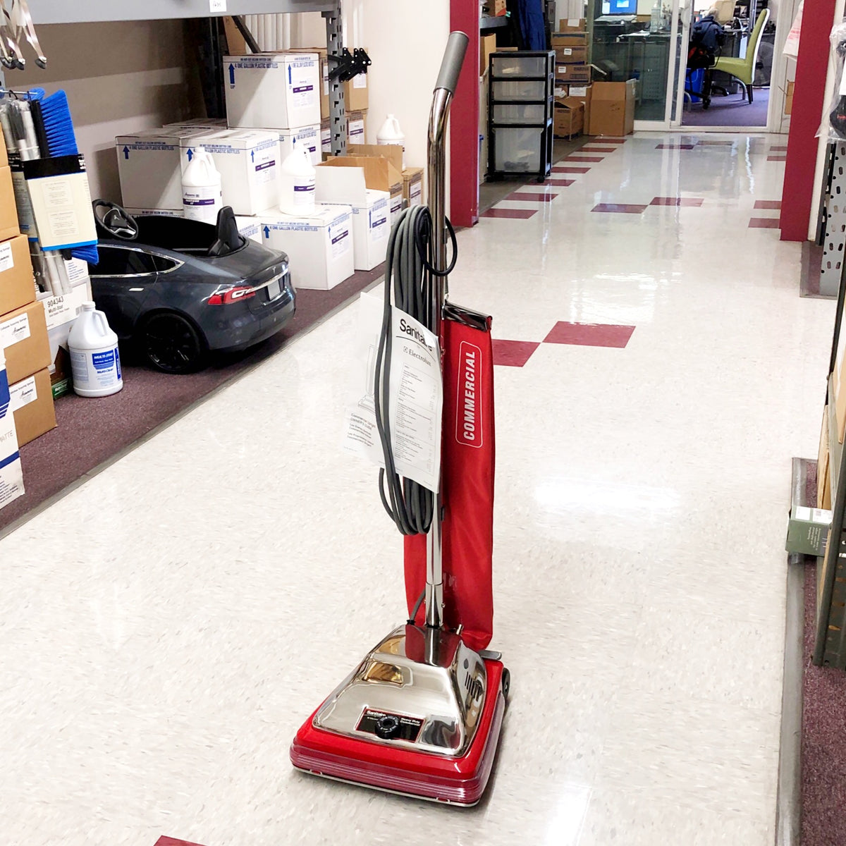 TRADITION® Commercial Upright Vacuum designed with a chrome hood for added durability in the toughest environments. Lowers cost of ownership with a 2,000 hour motor, shake out bag and chrome brush roll with replaceable bristle strips. Quick Kleen™ fan chamber helps diagnose and clear clogs for easy maintenance. Increase productivity with less downtime with a large-capacity, 18-qt. shake out bag and 50-foot quick-change, pigtail cord. New model adds looped handle for added comfort and maneuverability and a detachable cord for easier and cost-effective maintenance. SC886