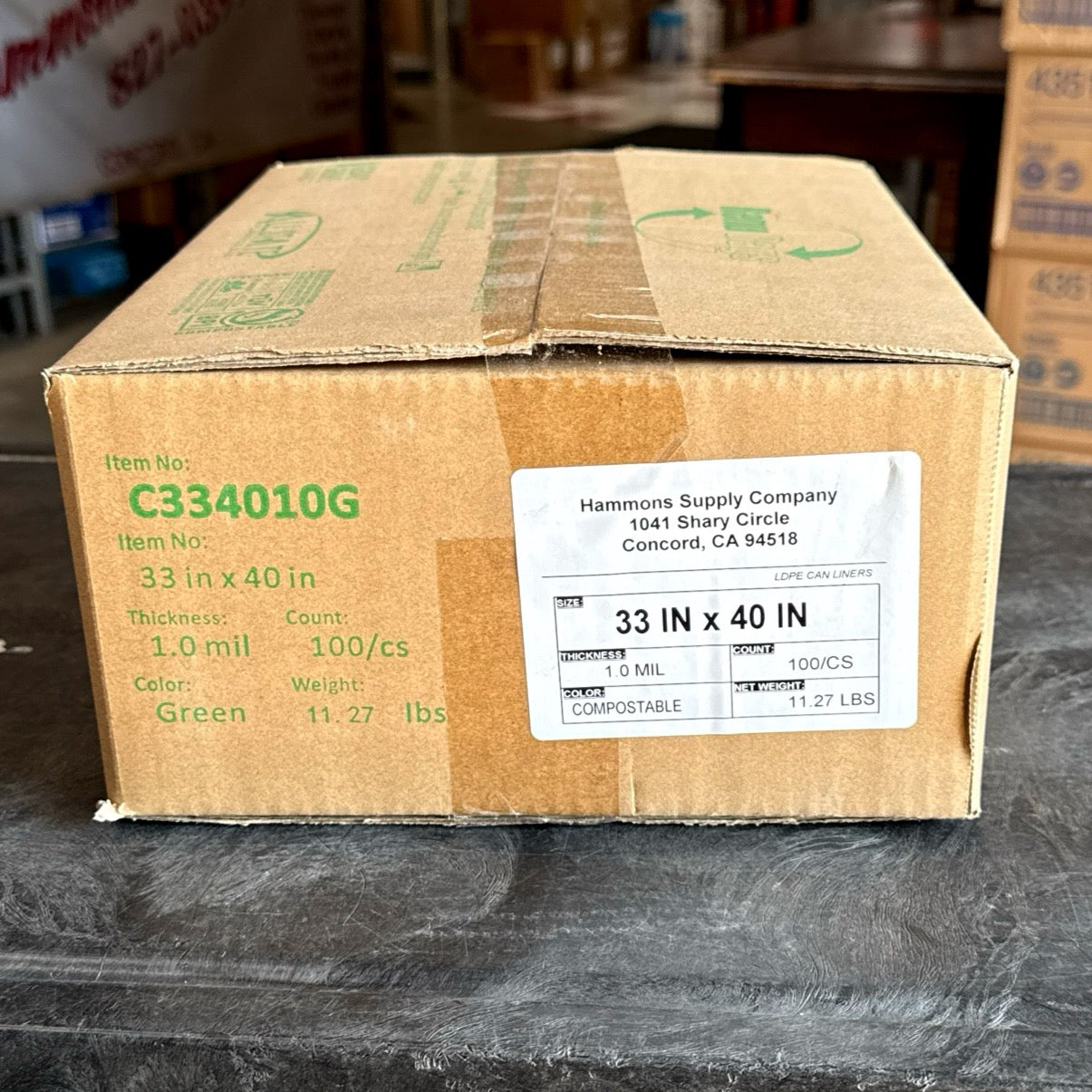 COMPOSTABLE 33x40 1.0 mil GREEN 32gal BAGS 100/CS