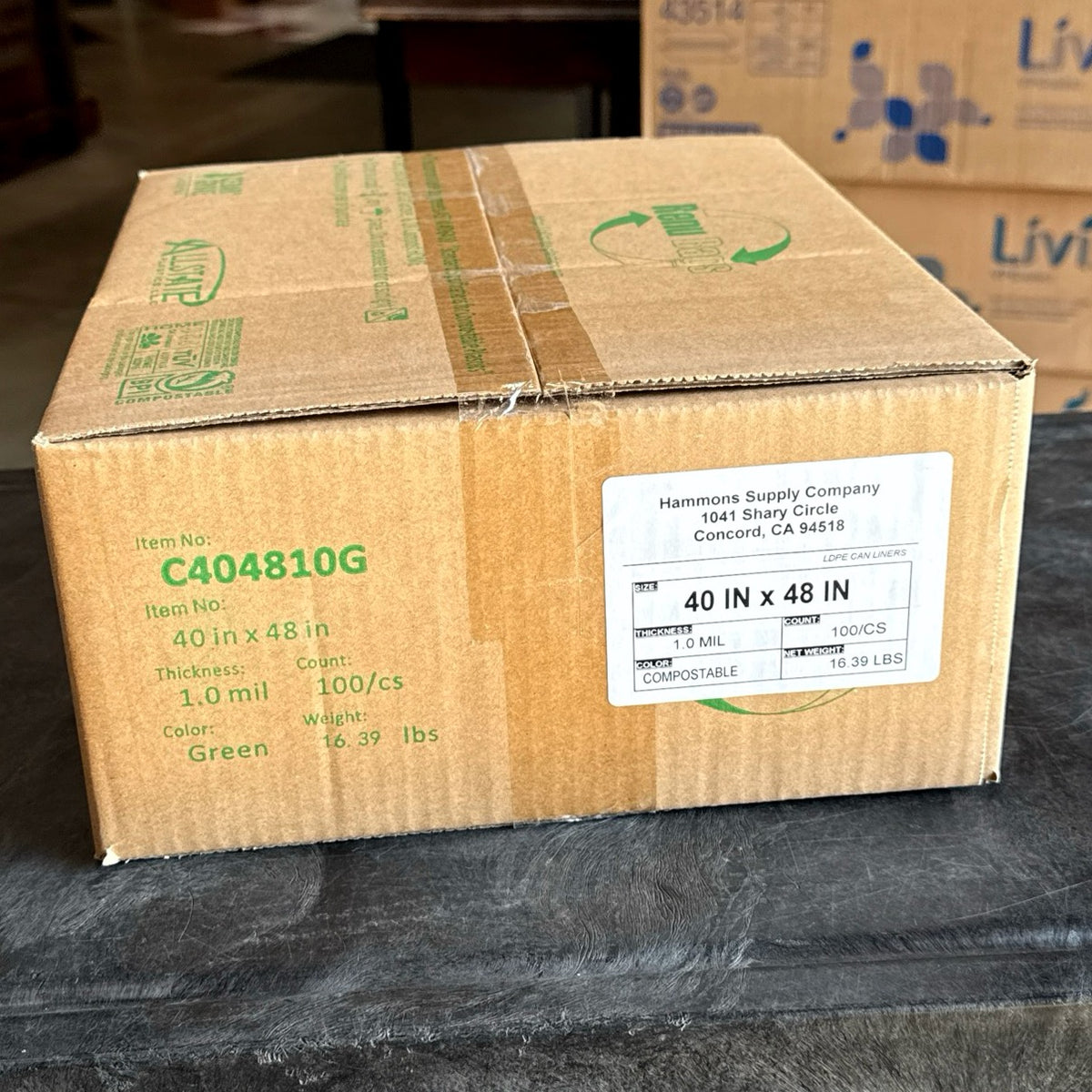 COMPOSTABLE 40x48 1.0 MIL GREEN 45 GALLON LINERS 100/cs (45 GALLON)