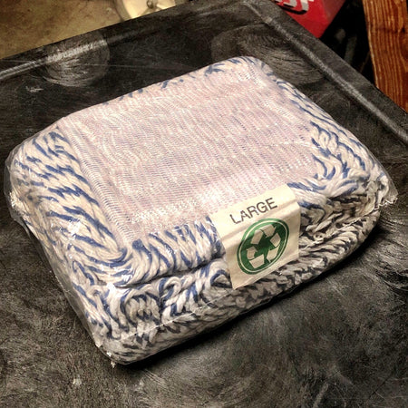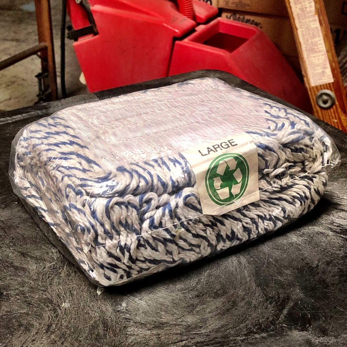 LARGE ATOMIC BLUE/WHITE FINISH MOP HEAD W/ 5" BAND, LOOPED & BANDED