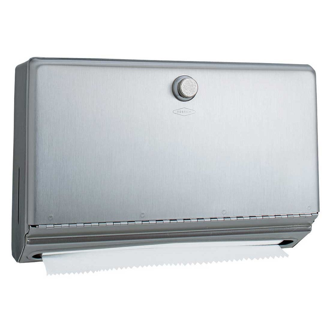 STAINLESS STEEL MULTIFOLD PAPER TOWEL DISP W/ KNOB LOCK ( SHORT ) BOBRICK 2621