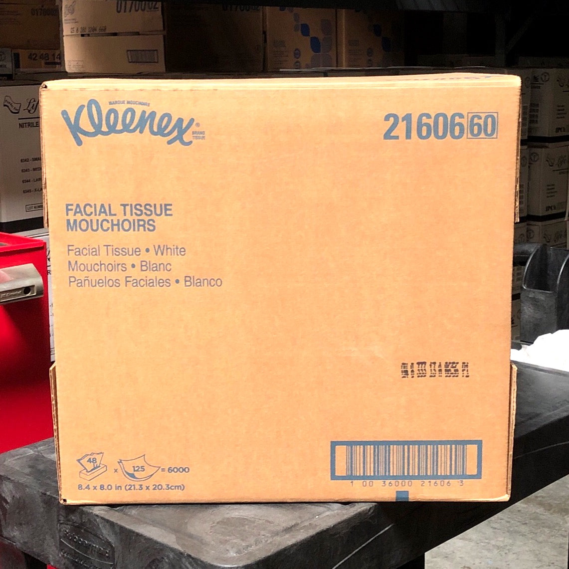 - 125 Tissues/Box; 48 Boxes of Kleenex® Professional Facial Tissue/Case; 6,000 Tissues/Case; 2-Ply; White; Flat Facial Tissue Boxes for Business