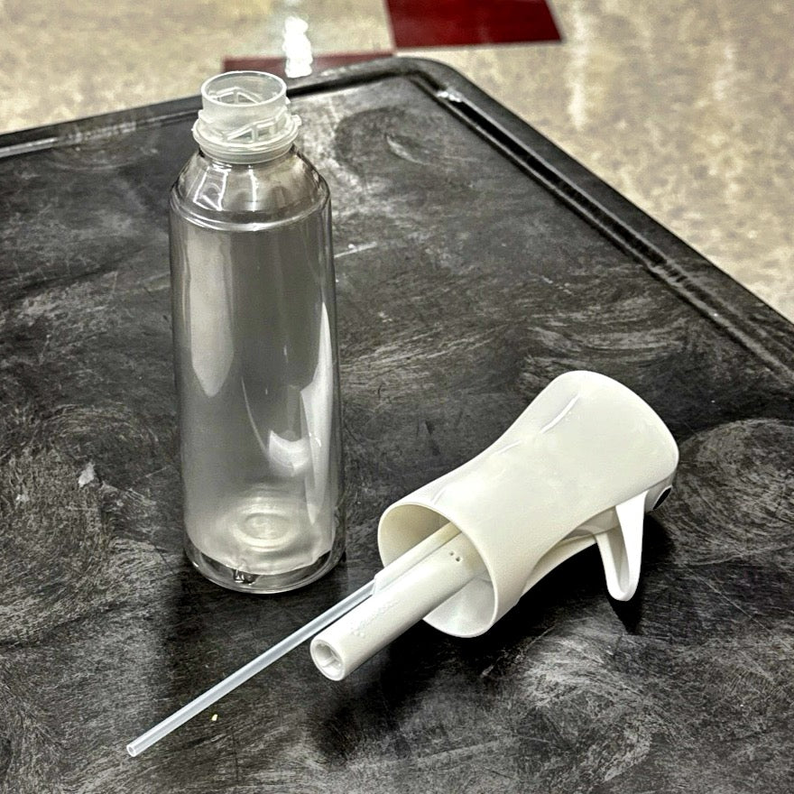 WHITE EZ Mist, a refillable 10oz bottle / sprayer combo that provides an aerosol-type mist without any chemical propellants.